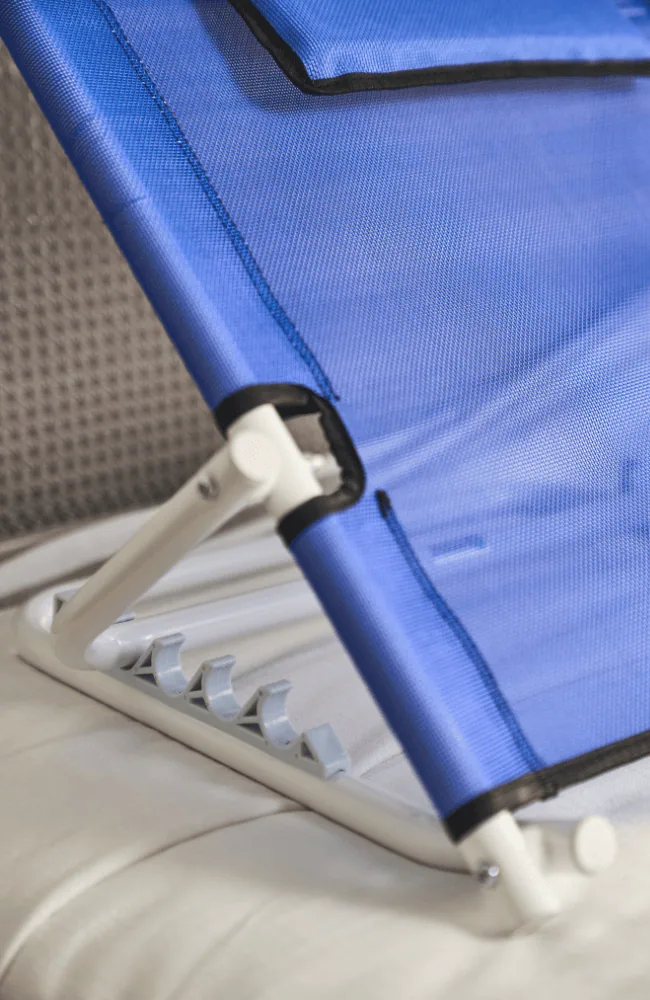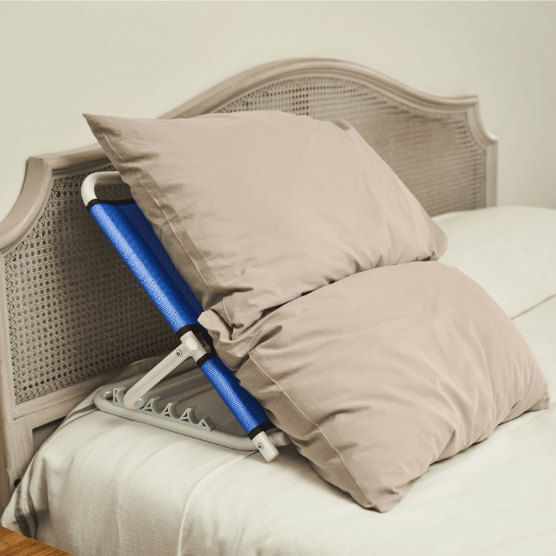 Alzador de respaldo para camas comunes (no clínicas), permite levantar la zona superior de la cama en personas que requieren de forma temporal dormir sentadas o semisentadas por post-operatorios, fracturas de costillas, favorecer la oxigenación nocturna o cualquier patología que requiera de esta posición.