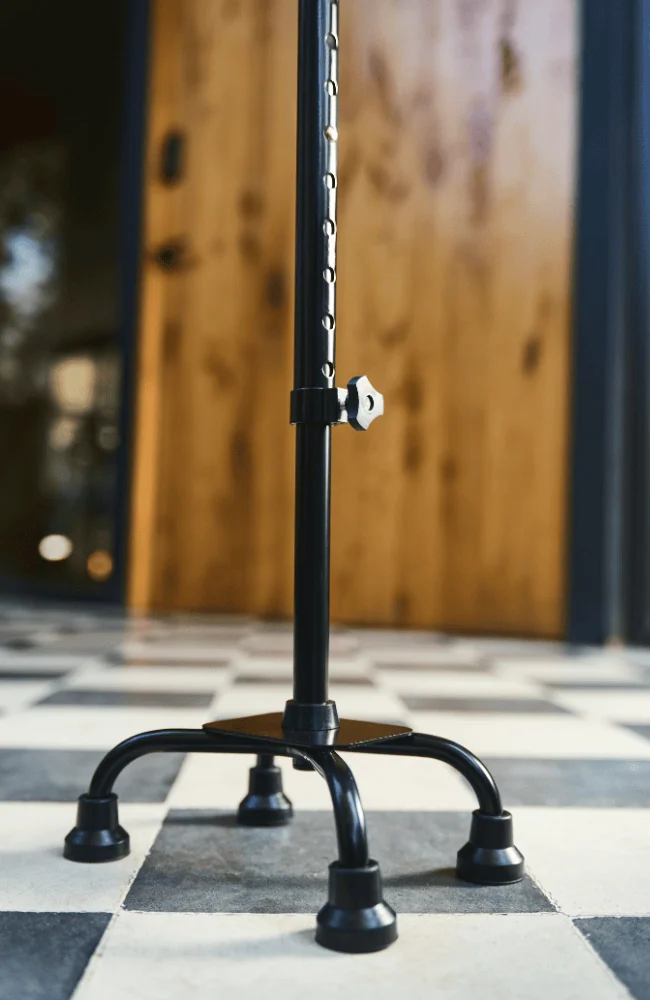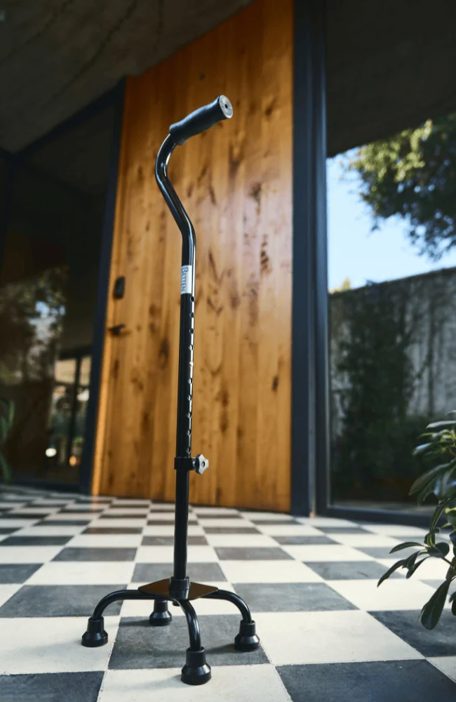 El bastón de 4 apoyos en color negro es la elección ideal para quienes buscan un soporte elegante, seguro y funcional. Con su diseño robusto, características ajustables y comodidad mejorada, este bastón no solo ofrece estabilidad y confianza, sino que también complementa tu estilo personal con su sofisticado acabado negro. Perfecto para aquellos que valoran la elegancia y el rendimiento en cada paso.