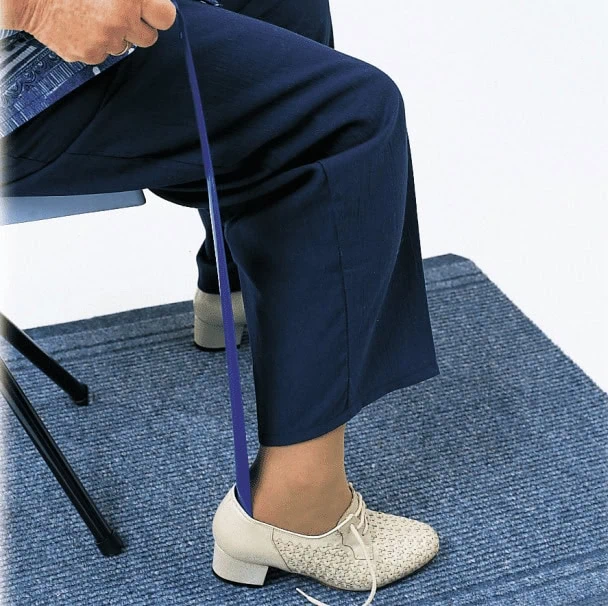 Calzador de zapatos plástico con brazo largo, elimina la necesidad de agacharse al ponerse el calzado.