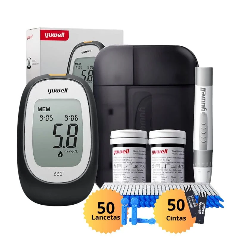 Kit Medidor de Glucosa en Sangre Yuwell 660 – Incluye 50 Lancetas y 50 Tiras Reactivas