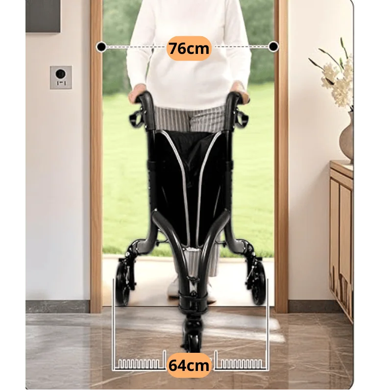 Altura ajustable: adaptable a diferentes usuarios, con regulación de 78,5 a 108,5 cm de altura total, y un rango de 52,5 a 75 cm en el mango para personalizar la postura de apoyo.