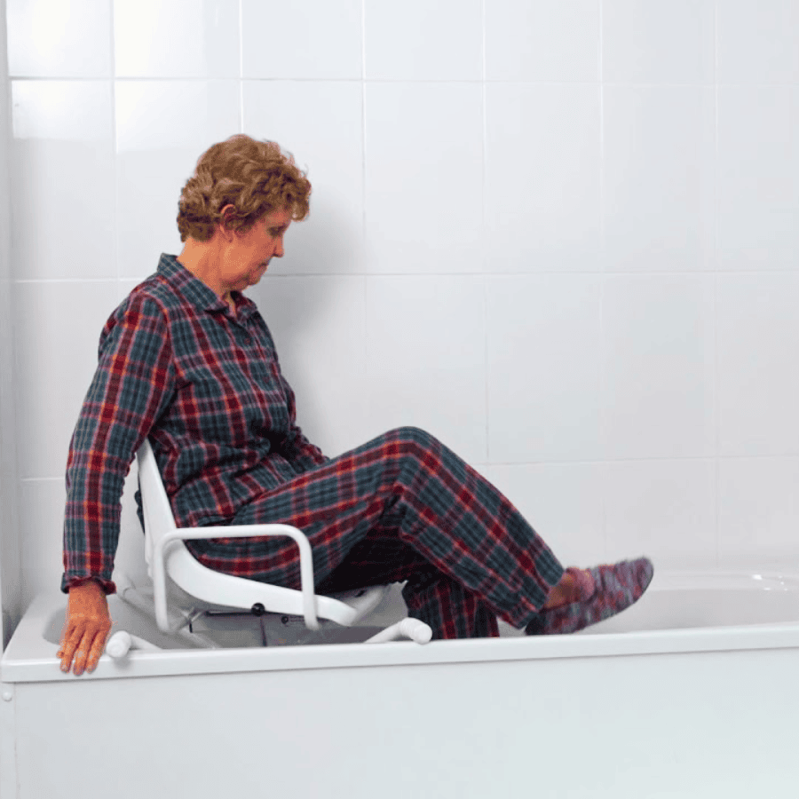 El asiento o silla giratoria para tinas es el máximo estándar en seguridad y comodidad para el baño de pacientes con baja movilidad o adultos mayores.